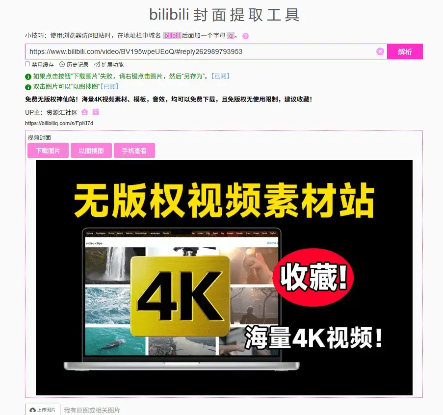 一、B站运营必备!这款全能封面解析工具,让素材获取效率倍增!