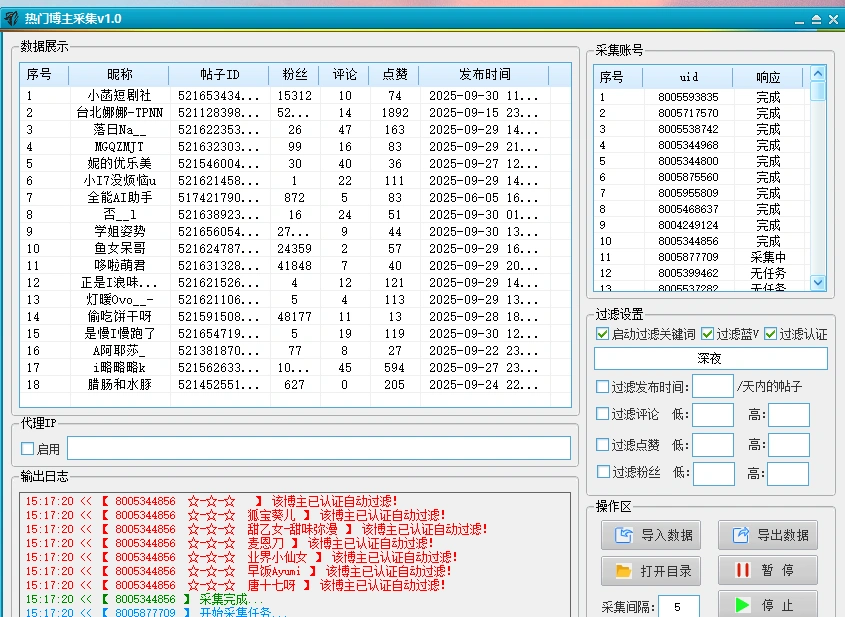 现在,你可以将这一切,都彻底地、一键式地解决了。今天,我将向你郑重介绍这款,能让你**轻松拥有“上帝视角”**的PC端神器——热门博主采集器 v1.0。