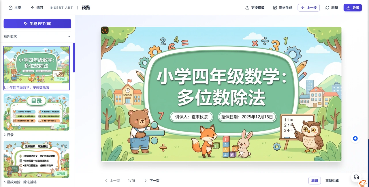 • 选择一个参考模板,只要一句话就能三分钟制作出来,最近靠ai制作了上百个原创的PPT教学课件,把我从找ai,最后解决问题全部过程给大家分享