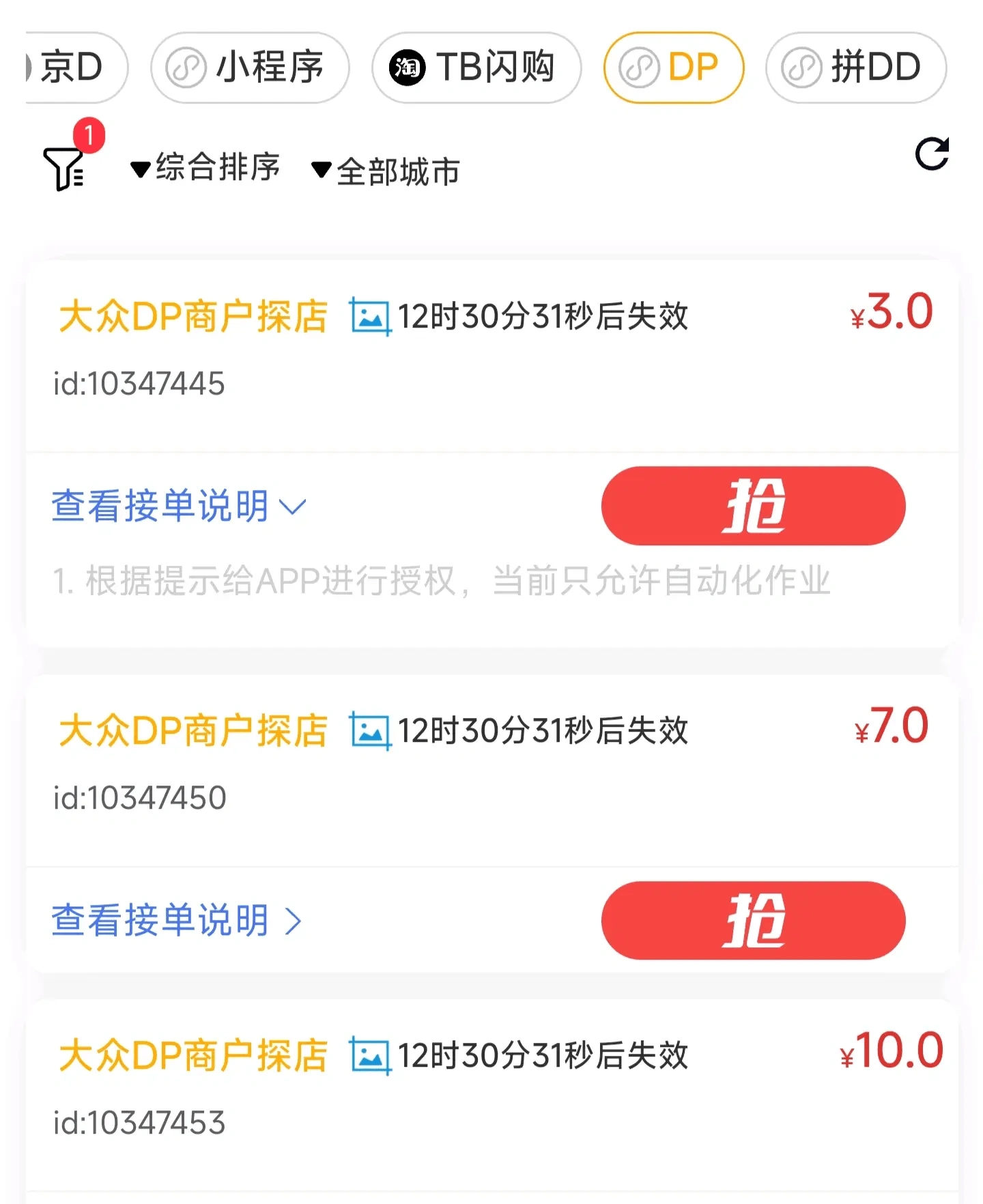 - 每条收益不一样-最低一条大约1元左右