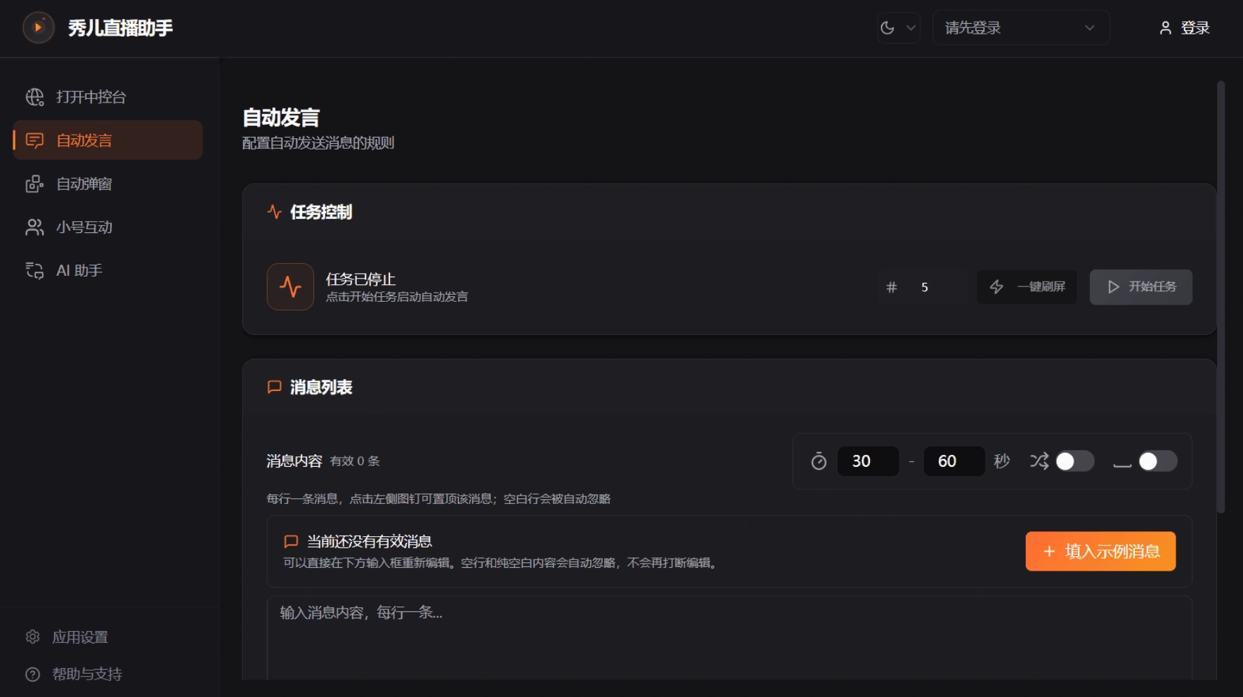 • AI 自动回复实时监听:捕捉直播间评论互动,自动生成回复内容